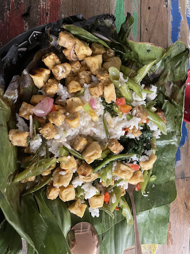 The place is nice and charming in a little garden and the food is very good! We loved the nasi bakar with tuna and tested 2 different local cooking specialities: rica rica and woku. Both delicious! You can even finish your dinner with a tasty cheesecake with mulberry. The staff is also nice and smiling. Plus, it is a very good value for money. We...