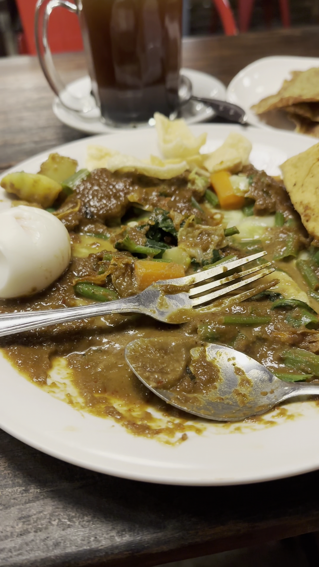 I had a delicious Tinutuan (Bubur Manado) at this pleasant restaurant tucked away from the main road. Staff kindly made the dish vegan (no meat, no fish, no egg, no dairy) - plants only with tofu blocks (I think the sambal contains fish so I didn't eat this). Nice selection of drinks too. Good size portion and value. Also serve vegan gado gado and other plant-based options. Friendly staff and chilled music vibe :)