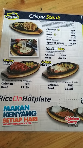 Have outdoor seating, indoor seating consist of AC room and non AC room, space quite spacious, parking lot not too big. Price is affordable with menus that you can choose, toilets also praying room for moslem. Located at the entrance of griyo mapan sentosa residence. I'd suggest that they have non cash payment such as using...