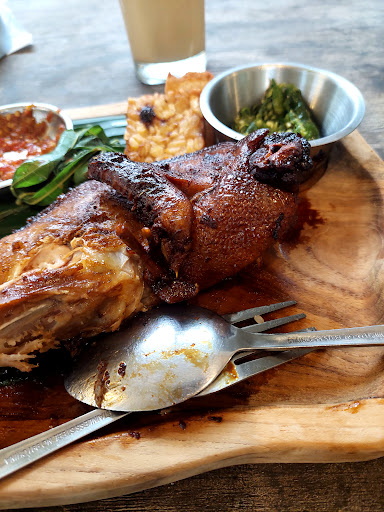 Read moreResto ini buat first timer memang semacam hidden gem yaa, karena lokasinya memang ngumpet, bukan di pinggir jalan, jadi pure ngandelin gmaps doang. Sebenarnya tempatnya bagus, parkiran memadai, ada mushola lumayan bersih, ada live music, menunya beragam dan rasanya enak. Tapi.... sangat disayangkan, pas kmrn datang kesini dapat zonknya, smg bs jadi bahan evaluasi/pertimbangan yg mau kesini: Bau limbah entah dr sungai/ perkebunan itu kecium pas pertama kali masuk resto, tapi pas udah duduk di area tengah sudah tdk tercium Sy dateng sabtu jam 3 sore, toilet bau pesing, lantai toilet menggenang, sampah tissu menumpuk blm dibersihkan Pesanan pertama, nasgor kampung, cukup cepat datengnya, rasanya enak, cocok di lidah anak saya. Pesanan selanjutnya sebenarnya 2 porsi bebek bakar. Satu bebek datang, rasanya enak. Bebek kedua nih yg gak datang2. Krn mmg dateng kesitu pas jam sore yg engga laper2 banget ya sy sabar2in aja nunggu bebek kedua. Elhadalah pas dateng bebeknya berasa kaya habis dikeluarin dr chiller. Engga paham deh, ini nunggu defrost dl trus kelamaan, atau error di kitchen dikiranya sdh ready to serve ternyata zonk pas dimakan. Anyep dalam artian anyeppp dinginnn. Sy minta dipanasin lah bae2. Duh ini lamaaaaaaa banget ada kali setengah jam an engga tau mereka lupa atau gmn. Pas mau dicancel barulah pelayannya datang konfirmasi 👦 ini td minta dipanasin ya kak, ada yg over? 👩 bukan over mas, tp dagingnya dingin ky habis dikeluarin dr chiller 👦 oh ya ini sudah di micro 👩 oh ya makasih (sambil mbatin, emang masukin ke microwave selama itukah, lupakah), bebeknya udah anget, nasinya jadi dingiiin, engga diganti baru, yasudah lah pengen cepet2 pulang aja Ada rombongan membawa poodle2 dalam stroller. Sebenarnya sy nggak keganggu sih, dan poodle nya jg yg terawat gt, cm jadi worry aja, poodle seperti itu apa ya nggak mungkin berliur? Jadi mending dikasih sign kalau resto ini pet friendly ya, atau diatur area pet friendlynya sebelah mana gt, jd pengunjung muslim engga...