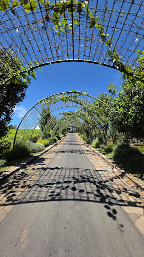 The parking area is very spacious, accommodating buses, cars, and motorcycles. The surroundings are full of greenery with tea plantations and strawberry fields, which makes the view very refreshing. Even though the sun was bright, the air felt cool and pleasant.