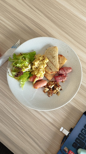 breakfast platter (atau apalah itu) malah kaya sadfood, sosis 2 biji, roti kecil tipis 2 lembar, beef bacon 2 lembar, jamur ditumis sama bawang putih tp baputnya gosong bgt jadi pahit, scrambled egg yg warna sama bentuknya ga appetizing, oily bgt, keasinan, ga dikasih lada, saladnya dikit, sayurnya ga fresh, dressingnya oke lah tapi jadi kerasa oily bgt overall grgr telornya. sama sekali ngga kenyang, rasanya pun nggak oke. padahal ini katanya yang best-selling. mendingan harganya dinaikin dikit tapi kuantitas dan kualitas naikin juga. kalo nanggung gini kaum mendang-mending ga suka, yg menengah atas ga doyan. piring yang dipake gede bgt, malah emphasize porsi makanannya yg dikit. datengnya pun dlm kondisi dingin.