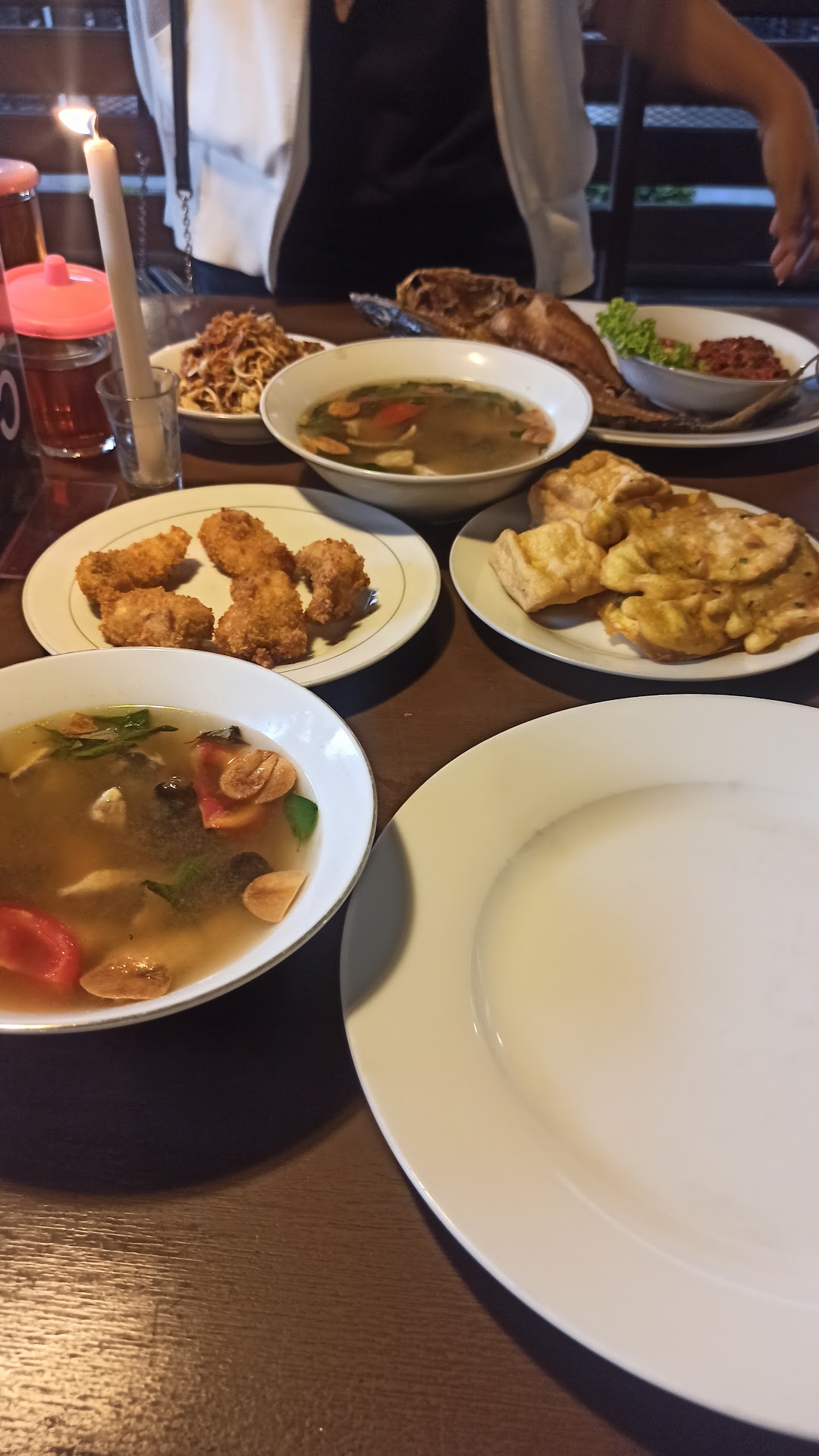 Kami tiba itu jam 11an....sepi yaaa.... Tapi...jadi bebas pilih tempat dunk...mau duduk di kursi atau lesehan bebas pilih...kesan pertama itu luas,resik,rapih adem ditambah dengan gemericik air dari kolam ikannya... Daann...toiletnya beuuhh...bersih dan cukup luas,bisa mandi juga gkgkgkgk...karena di sediakan shower di dalamnya (jarang ada toh di tempat lain,hee...) Plus lainnya yaitu disediakan mushola yang cukup menampung 20 orang ya... good vibes ya...