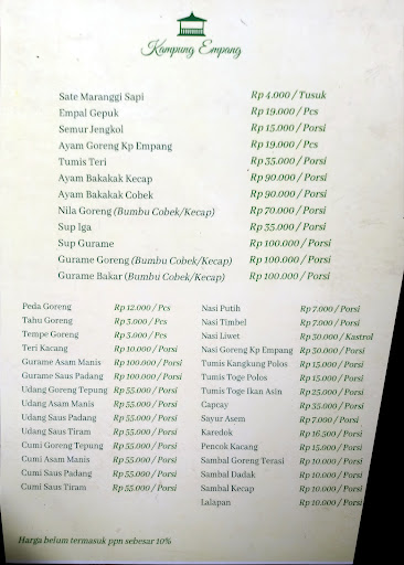 semua menu yang saya pesan disini tidak ada yang gagal, enak semua, no complain. Ikan, ayam goreng, sate, liwet, sop gia, sayur asem, karedok, sambel, enyakkk smua tempat cozy, luas dan instagramable. Bnyk pilihan tempat bisa lesehan atau pake kursi. harga relatif, bisa dibilang agak tinggi tp memang standar resto di purwakarta segini, dengan tempat dan kualitas makanan seperti itu masih sangat worthed. booking awal lewat google dan berlanjut ke wa, CS nya sangat ramah, kooperatif, fast response dan detail sampai kirim foto2 dan video dlm menjelaskan. setting penerangan dimalam hari enak di mata, terang tp tidak bikin silau, jadi masih bagus untuk foto2.