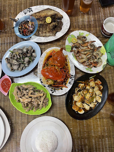 Makanannya jujur ga sesuai dengan tempatnya yang sepi, rasa makanannya enaaakkkk dan fresh banget, daging kepitingnya manis, udangnya juga fresh dibakarnya enak, untuk kerang agak kurang karena agak kering dan sedikit amis, untuk cumi juga masaknya agak kekeringan tapi enak, dan ikannya enak jujur ga amis. Untuk makanan si overall enak cuman kerangnya aja kurang 😍 kalo disuruh balik lagi untuk makan bolehlah makan kepiting, udang + ikan 🥰.. pas dateng kebetulan lobsternya lagi kosong huhu.