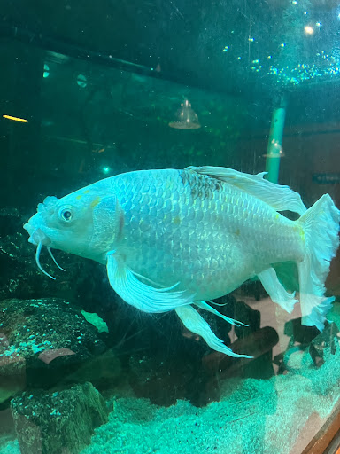 Suasana cafe hangat, nuansa kayu dengan banyak hiasan dinding ala cowboyan gitu, aquarium besar, jadi kalau ke sini dengan anak-anak, sambil nunggu menu datang, bisa lihat ikan-ikan.