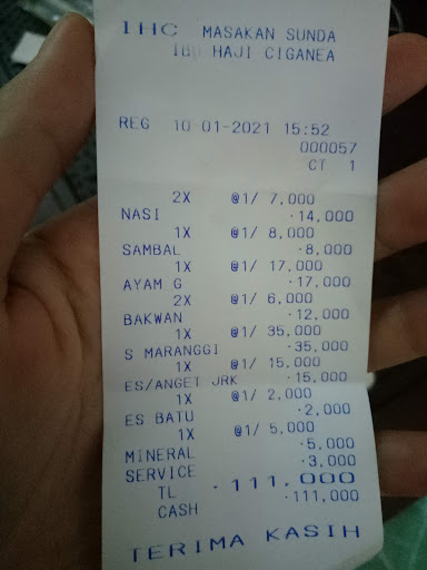 Β Β Β Read moreRumah makan HajiCiganea IHC ini ada beberapa cabang, salah satunya cabang yg ada di Jalan tengah/Jl. Sudirman dan berada sebelah kanan bila berasal dari pasar Jumat setelah pertigaan, patung kuda sekira 250 meter. Makanan yg disajikan yg dikenal adalah ayam goreng,lalapan,sambel khas, tahu tempe,perkedel, dll. Juga ada menu sate, tahu kukus,ikan dsb. Menu dan pelayanan cukup menarik, trmpat parkir yg luas dibelakang, dan terdapat beberapa gazebo utk makan keluarga, atau rombongan yg cukup besar dekat plataran parkir. Hanya suasananya kurang nyaman kurang pepohonan. Dan tidak ada taman dan hal lain yg...