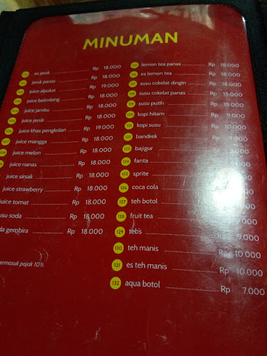 Read morewaktu itu order nasi liwet paket ber3 (ayam grg, tahu, tempe, perkedel jagung, ikan asin, sambal, lalab diksh pete jg) ternyta nasinya bisa utk ber5 lhooo...rasanya lumayan enak...ayam grg cukup enak lainnya b aja order nasi tutug oncom b aja & dingin order karedok khas saung pengkolan, kirain enak ternyta tdk sesuai ekspektasi euy order sayur asem yahh lmyn tp cenderung manis spt sayur asem sunda pd umumnya order pete bakar..nah ini baru mantap petenya mgkn lg musim jd bgs2 order lg sambal krn sambalnya enak (terasi) tp 1porsi itu sedikit bangettt deh agak kecewa teh anget diksh gratis klo gk slh ingat service yah lumayan bgs gk ada yg aneh parkiran luas posisi persis tikungan agak tajam...posisi kiri sblm great AA view disini keren tepat di belakang rmh mkn ini,...