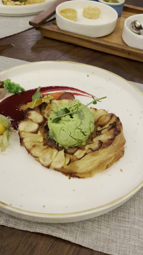 So, this restaurant is a dream come true for anyone who loves freebies. From the moment we walked in, they were practically showering us with goodies. A free welcome drink? Check! Banana and tempe chips on the house? Check! And just when we thought it couldn't get any better, they brought out an amuse bouche with a delicious beef patty (forgot the name 😓). Felt like we came here to have free lunch 😄