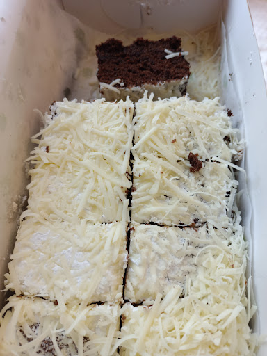 Nah didepan ada pusat oleh2.. rumah sosis.. menjual bika Ambon, wingko babat, bolu susu.. tapi utk wingko babat nya tidak di produksi selama bulan puasa.. Bika Ambon ada testernya utk rasa caramel dan keju.. menurut saya terlalu manis.. jadi saya hanya mencoba beli bolu susu rasa coklat toppingnya keju parut.. ternyata rasanya mirip brownies kukus am*nda.. Utk harga 55k per kotak..