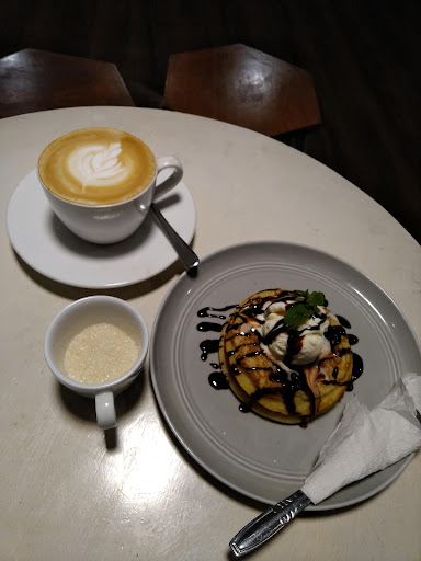 Sunday afternoon on mid January 2019. Place quite ok but takes quite time to serve my orders which was only latte and pancake. We didn't order anything else, since we came only for coffees and cakes that evening. Disappointed of not seing any cake showcase so i ordered the banana pancake with vanilla ice cream topping . The coffee isnt something that i can call it fab, but pancake was delicious so i decide to order another batch to be taken home and they gave us more ice cream topping ❤️ I recon there isn't any showcase for cakes to display, but there's one whole page of menu that ain't available any longer. 22k for hot latte and u must add 2.5k for any additional syrup (hazelnut, caramel, vanilla). Only 15k for the delicious triple stacks banana pancake+1 scoop ice cream topping. My suggestion, please add variety cakes to display, and it would be great if you enhance the taste of your coffee....
