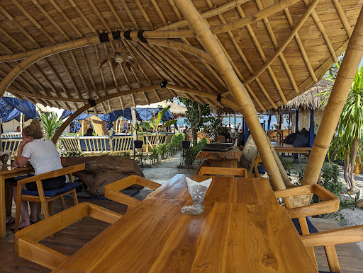Read moreThe Alegria is a fine restaurant, close to the very busy Gili Air harbour and jetty. It's a great place to chill, while waiting for your boat, or if you need a leisurely bite, after a long boat journey from Nusa Penida or Bali. The dining area is eclectic and attractive, and poses tough choices as to where to sit - there's seating under a covered roof, seating in a garden and then there's seating on a wooden deck across the road, shaded by large trees. I chose the latter, because it had a clear view of the jetty and the boats coming in to disembark passengers or leaving after taking on passengers. The Gili Air harbour is a busy one, with boats of all shapes and sizes, against dazzling blue waters and a clear view of the mountains in Lombok not far away. The food and beverage prices are a bit pricey, but given its prime location, that shouldn't be a surprise. The staff are polite and friendly. You're attended to quickly and the...
