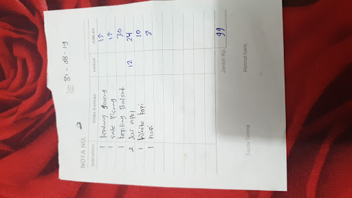 White Cofee 10K... kentang goreng 15K... Sate Pisang 15K... kalo dibandingin dengan harga makanan dengan view pantai dan fasilitas tempat foto yang banyak di senggigi, ini 25% lebih mahal dengan view standar dan fasilitas standar... sudah sya coba kepitingnya enak, bebek bakar enak.. tempat bersih.. toilet ada...