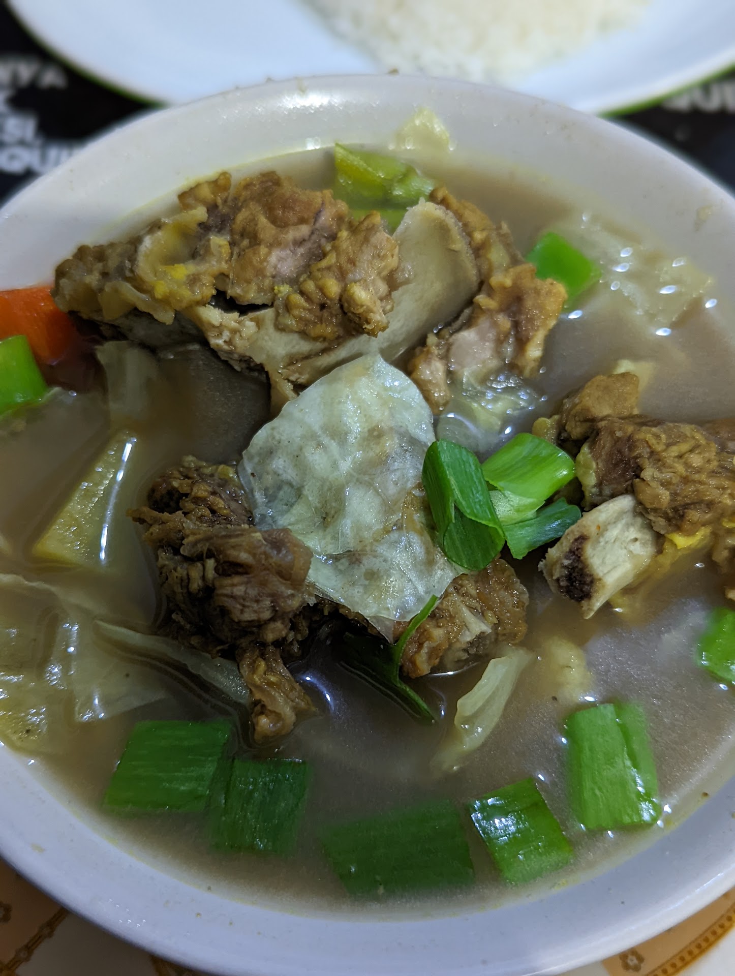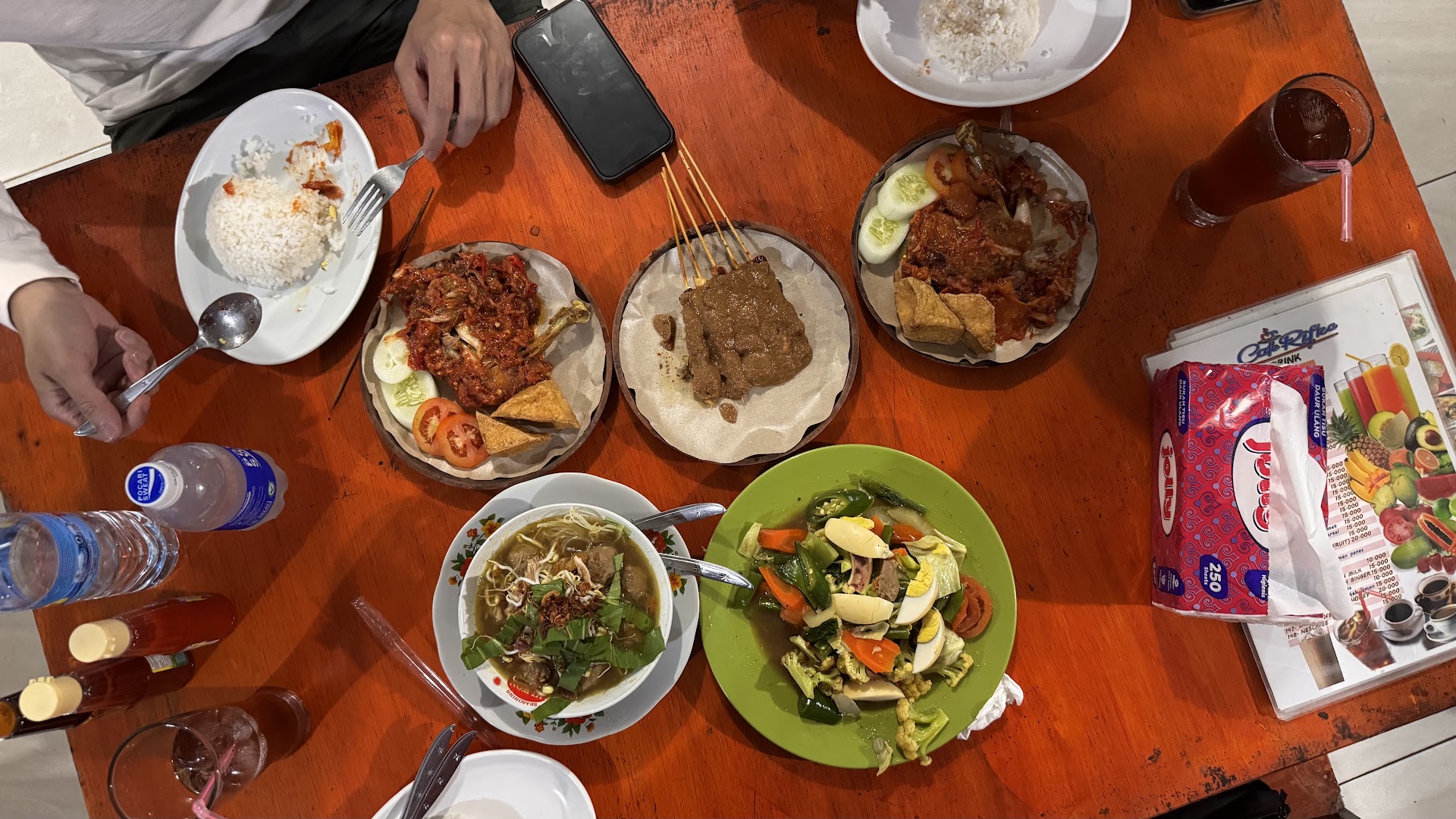 Read moreThoroughly enjoyed our dinner at this obviously-caters-to-tourists-but-who-cares-because-it's-delicious restaurant. You order by writing the menu number of the items you want on an order slip then the food comes slowly but surely. Do not arrive starving lest you become hangry but the food is worth the wait. One friend enjoyed his complete burger (beef AND chicken - so extra), we finished every last morsel the bebalung (beef bone soup with veggies) and bakso something-something (meatball soup with noodles with a bit of a kick for sass). You can walk across the street to a shop to buy a large bintang for 35k if that's your thing. Enjoy and good luck on your trek...