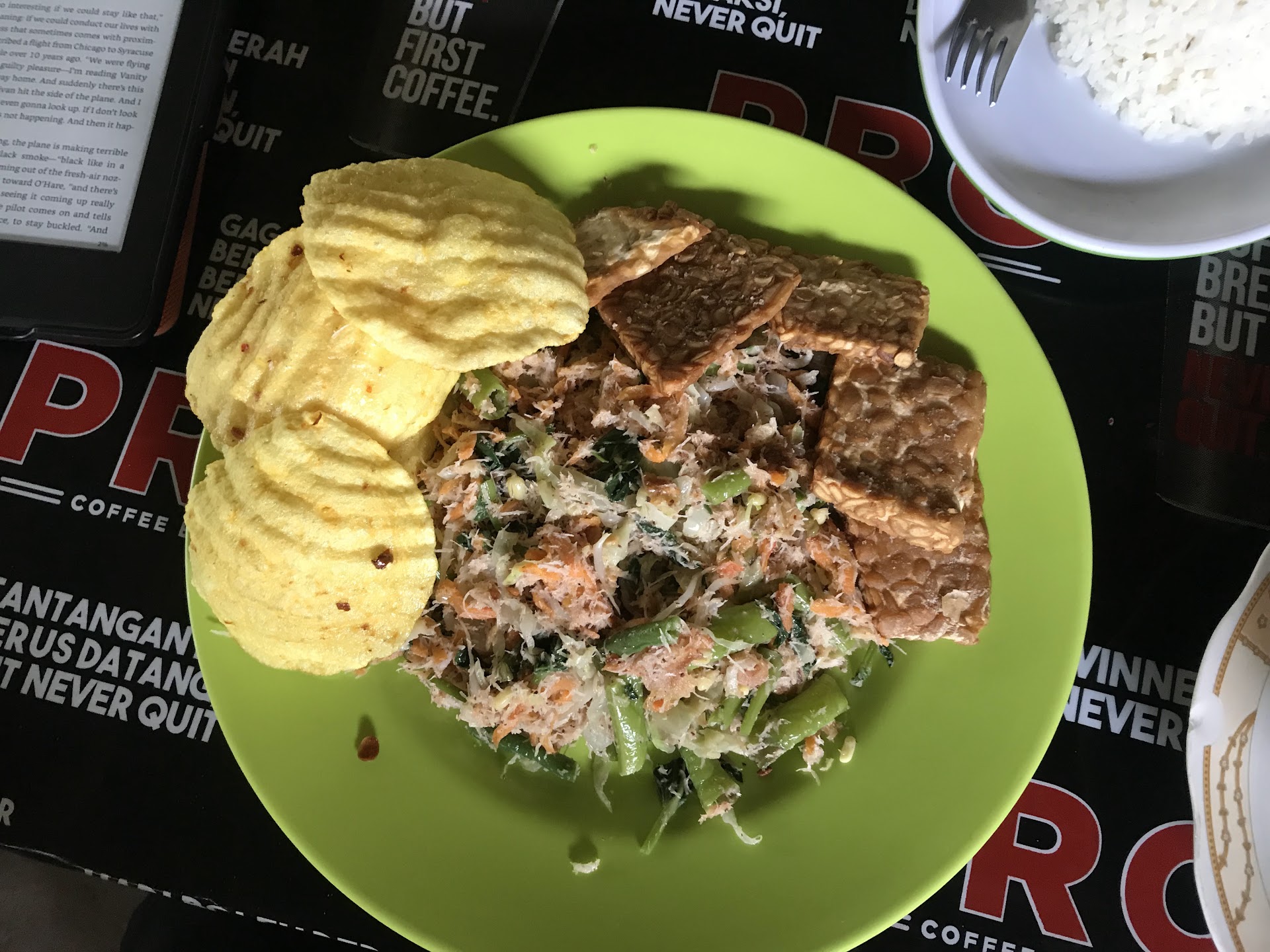 The delicious food and warm hospitality here will be among our fondest memories of Senaru! We ate here multiple times, and were always treated to wonderfully flavourful and fresh dishes made with obvious pride. The pelecing, served with a freshly made and wonderfully aromatic tomato based sambal and a side of grated coconut (a new preparation for us) and the coconut infused Serbuk were our highlights. The tempeh curry is also very satisfying, full of spice and herbs - a great option if you’re addicted to tempeh (we are) but want a break from its deep fried preparation.