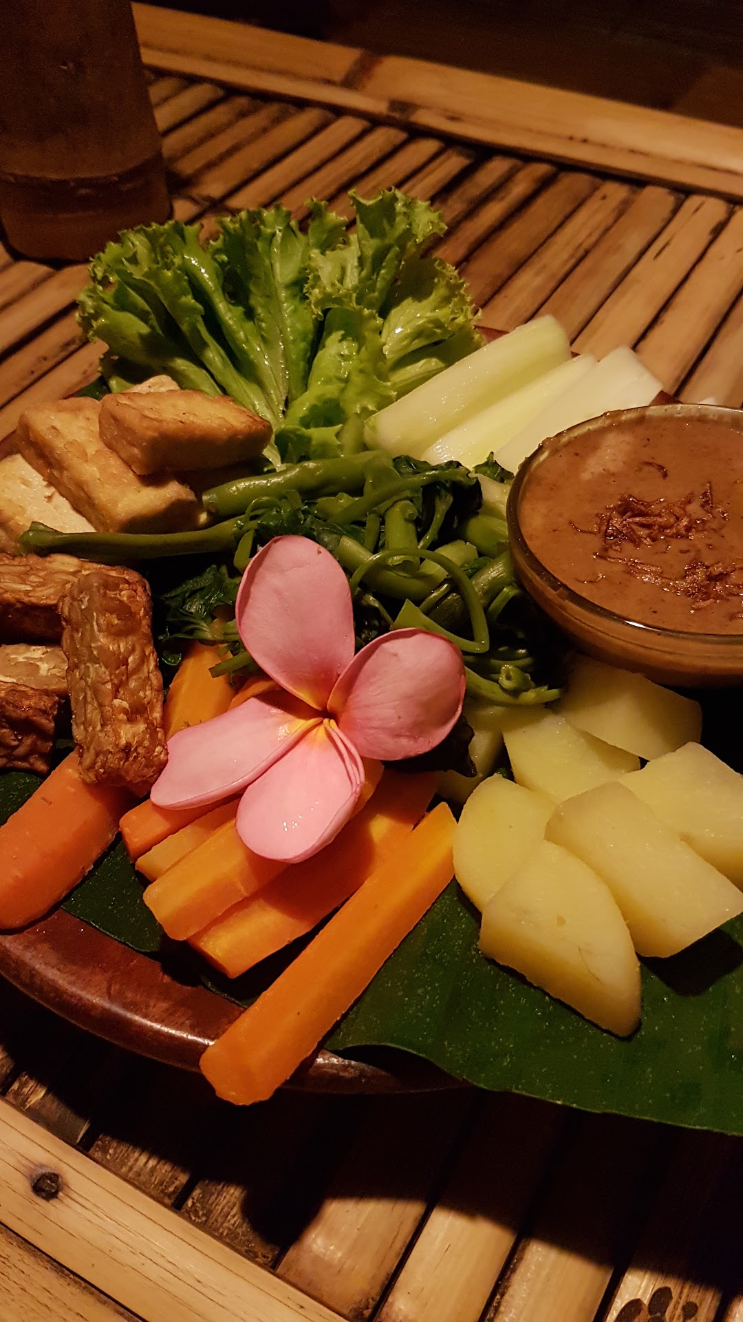 Con: You eat outside in a small „cottage“. As soon as the sun goes down there are bugs flying around EVERYWHERE. They even fell in my food and were very annoying My partners food (satay) was cold My partners side (rice in palm leaves) was also cold but according to the waiter it‘s eaten that way. We recommended a note in the menu. Before we got our food there was a typical beach sales person who knew the waiter and tried to sell us necklaces and bags. When I am at a restaurant I want to peacefully eat and talk to whoever I invited which was not...
