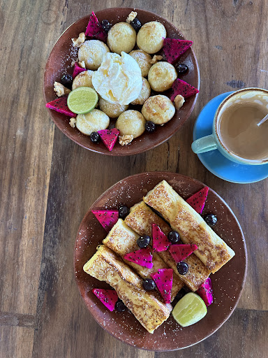 Read moreBreakfast is my passion and Gili Coffee Roasters was a dream come true! Everything was delicious, fresh and beautifully served. The options were much more elaborated than the usual breakfast and lunch menus we found around Bali and even though I researched many places that I wanted to try, we came again to Gili Coffee Roasters just to keep trying more of their plates! The Dragon Bowl was the best smoothie bowl we had after trying tons of them during our two weeks travel, just so tasty and creamy, coffee was also delicious, the French toasts were original and amazing, the brusqueta was fresh and the bread was homemade and delicious, the mini banana pancakes were so yummy too. We only missed the avo toast because they use their own avocados and they were not available at the moment. We’ll have to come back! The staff is absolutely nice, friendly and thoughtful. The place is also lovely and calm, there’s a comfy outdoor open area with fans were you can eat, hang out and work, or you can sit in the garden among the trees. It is also great that you can see the trees and farm where your food comes from. Best breakfast in the island, do not hesitate to come visit! 1000% recommend, loved Gili Coffee...