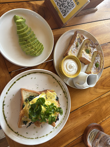 I had the Japanese milk bread toast with fried chicken, poached eggs, and spinach plus a side of French toast with whipped cream and maple syrupâand honestly, every bite was outstanding. The toast was thick, fluffy, and perfectly golden, the fried chicken was crispy on the outside and juicy on the inside, and the poached eggs were absolute perfection. The spinach and avocado added that fresh balance to round it all out. And then the French toast? Donât even get me started. It was rich, indulgent, and had just the right hit of sweetness with that cloud-like whipped cream and warm maple syrup. It felt illegal in the best possible way.