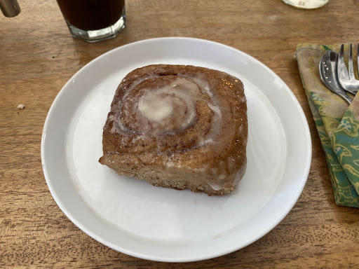 The cinnamon roll is gluten free (which I am not but it was great). It was dense but nice and sweet and cinnamon-y and wonderful.