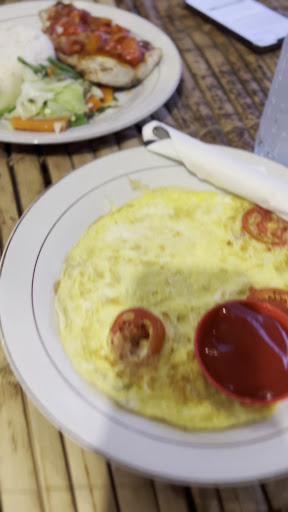 We ordered a simple yet satisfying meal: an omelette, grilled prawns with garlic sauce, and grilled fish — also with garlic sauce. The garlic sauce had a tomato base, and both seafood dishes came with steamed vegetables and rice. Everything was well-cooked and flavorful.