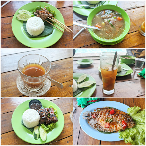 Menu singkong keju kami nilai 8/10 Nila goreng sambal matah 7/10 Bebek betutu 5/10 Iga bakar 7/10 Es buah 7/10 Ayam serundeng 7/10 Sate daging 7/10 Tempe mendoan 4/10 Perkedel jagung...