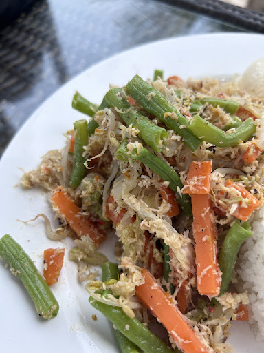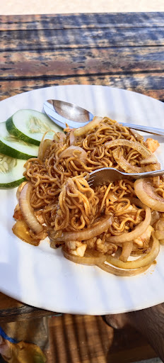 We had the Sate Ayam, Urap-Urap and Mie Goreng. Unfortunately, all are an insult to Indonesian food. I focus on the first in writing and the second in pictures. The sate came in large chunks of meat that did not seem to have been introduced to the concept of fire and the peanut sauce reminded me of home, which, in this case, is far from positive. The staff is friendly, the local cat is good company and the view is lovely - yet, in the first place it is...