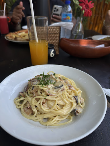 The best part…. Food 😋 The homemade pasta were fabulous, perfectly Al dente and generous portion. Had the Mediterranean one and meatballs. We understood that the meatballs themselves was added of starch (it seams to be potatoes - not sure) a little bit too much of it. A bit more seasoning in it would have been welcomed as well. But overall a very good dish. The Mediterranean one were so good with excellent black olives, great amount of sundried tomatoes and fish. It’s was tasty, delicate and well seasoned. As a starter we tried the beef tartare. We were expecting a defrosted old frozen diced beef but not that! Instead we received a fresh chopped qualitative beef with capers, gerkins, shallots, and a yummy sauce. Was it ketchup in the sauce chef? It was a bit heavy but we still umami. It is served with French fries but would have been great to have some craquers or grilled bread. Just a suggestion ;) On 4+ month of traveling our first attempt on beef tartare was nailed!