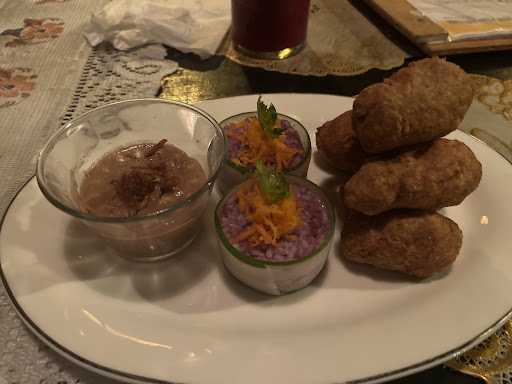 After an hour and 20 min of waiting, we received the rice roll starter which was amazing (or maybe we were just too hungry because of the wait?). Then shorty arrived the mains. Their signature tofu tek dish, that was totally tasteless - we've never tasted such bland tofu and diluted peanut sauce during our travels in Indonesia. The eggplant raos was better, or at least it had some flavour to it. At this point we still had hopes for the traditional dessert but it was disappointingly bad. The service was ok, although they didn't really seem to care nor hurry at all. The prices are average for the area.