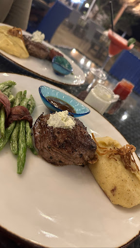 This restaurant is an absolute gem right by the beach. The environment is charming and unique, with even the toilet featuring comics that make you smile. We also loved the quirky shark tissue holders on the table. It is not just the ambiance that makes this place special; the food is outstanding. The burger was cooked to perfection, while the steak exceeded all expectations and became an instant favorite. It's safe to say that this was the best steak we have ever had. The staff go above and beyond to ensure great experience. Their friendliness and attentiveness made us feel welcome and valued each time we visited. We were curious about the owner of this fantastic place and we had a pleasure to meet him, a genuinely great guy who takes care of his team. It was clear that his passion and commitment extend not only to the food but also to creating a warm and welcoming...