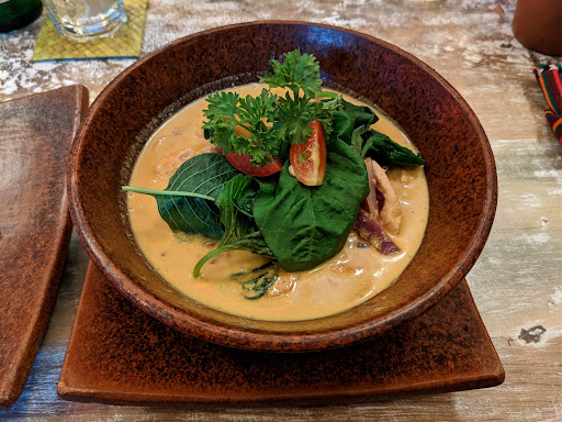 Read moreNice place, and the service is super friendly! We had the pumpkin green curry and the Caesar salad and 2 drinks, and we paid around 300 000 IDR. The curry was very good: tasteful, lots of flavours, big chunks of pumpkin and of onions, and some greens (spinach?). The salad was a bit disappointing, very dry as it’s 85% chicken, 10% bread croutons and 5% salad. It felt more like a chicken breast cut in small than like a salad, the ingredients were not really blending together. For 90k it is also not cheap (although the portion is HUGE). I would recommend removing half the chicken off the salad and replacing it with more vegetables, in order to have a bit more diversity of tastes in the dish. The ginger turmeric drink was very nice. I like that they offer several vegetarian options, and that the straws in the drinks...