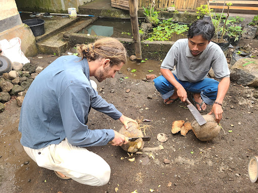 Read moreLoved our experience at Warung Iqbal. The coconut process was amazing and well guided. It was very hands on - we were able to open the coconuts ourselves with a machete, grate the coconut flesh, hand press it into coconut milk, then cook down the milk into oil. We wanted to do everything by hand and they were so patient with us, but you can speed up the process having them help you more and using machines for parts of the process. The coconut oil is so fragrant and sweet compared to the store. We also thoroughly enjoyed making coffee the traditional way with rice and beans roasted and grinded to make a delicious blend to take with us. The food is also delicious and incredibly fresh, getting the meat directly from coconuts for certain dishes, and we loved the sambal. Would recommend for anyone to have this experience in their family home as well enjoying the conversations and generosity they offered us that we will remember...