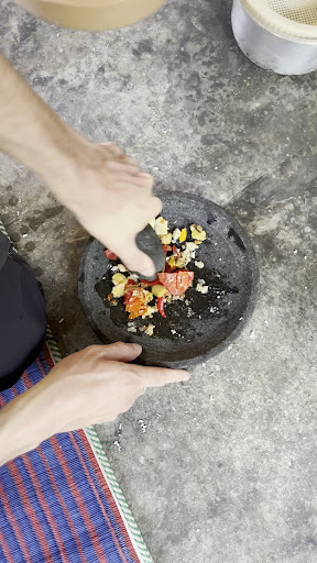 Ttencooking class: You will be cooking with and observing his wife cooking in her actual kitchen, which is fascinating in itself to see how your food is being prepared in the warungs you go to. You can choose your dish(es) and make it with his wife.