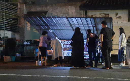 Lapak Bu Tinah berupa sebuah tenda pinggir trotoar yang berada di daerah Jetis, Yogyakarta.