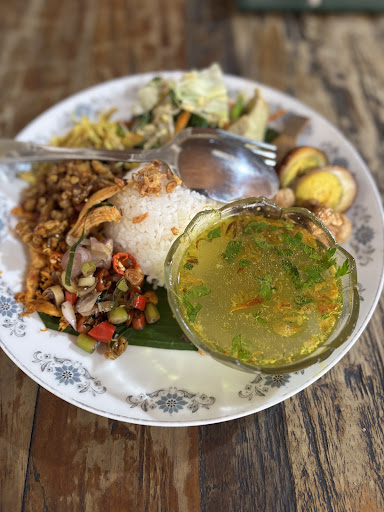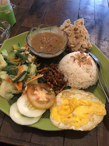 I ordered Nasi Pecel and Hot Lemon Tea which were a great combination for me as I just finished working. They told me that they will have Live Music at 9 PM but sadly I couldn't because I needed to finish some stuff before the weekend. The area really looks like Ubud with a small road and a few here and there restaurants and places on the side of the street. Also, cute pinky restroom with cool graffiti and stickers on the toilet. Super recommended to those who want to try Indonesian dishes with a chillin' vibe and...