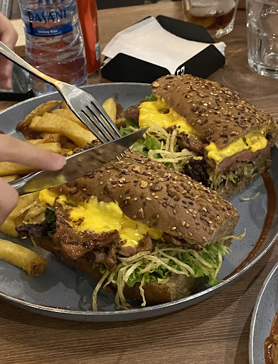 Food was amazing especially the steak sandwich. Totally recommend it. The steak pizza was delicious as well. My sister ordered the mushroom burger and she said it was great, she gave it a rating of 4 out of 5✅. Another point, staff there do speak English which is super helpful. There French Fries is so delicious and the onion rings as well taste good...