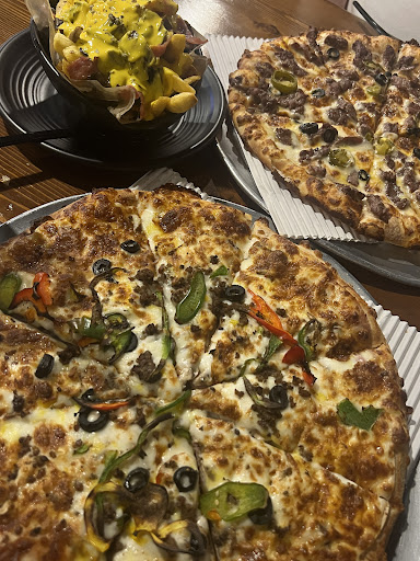 The staff are friendly, though you can tell they’re often tired from the rush. There’s plenty of seating across both floors. The pizza is consistently perfect—great portion sizes that you can easily share or take leftovers home. Drinks are good too.