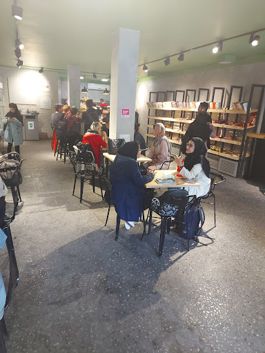 Great place, healthy and fresh food with good prices and service, they have the calories for everything written next to price, they will warm your sandwich in a sandwich maker if you ask them but it takes a few minutes so don't do it if you're in a rush. Juices and sandwiches are all tasty and we ended up ordering seconds. people usually come in for a few minutes to grab a snack or talk with friends and leave overall great...