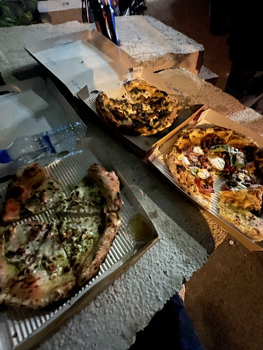 It’s a takeaway place, so you’ll either eat in your car or wait for the open bar to be available. It gets busy, but there are quieter times too. The bread under the pizza is incredible—truly one of a kind. Recently, the pizza sizes have shrunk a bit, which is a downside, but the taste still makes it one of the best pizzas you’ll ever have. Everyone should try it...
