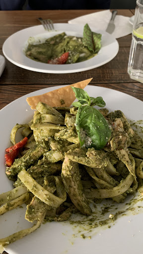 Read moreWe had vegan tomato and eggplant pasta, garlic pizza, and steak. The texture of the pasta could have been a bit softer and more well-cooked, but the sauce was delicious. As for the pizza, it had a strange cheese flavor, though the overall combination of ingredients was interesting still, not really my choice. The Caesar salad and fries were excellent.