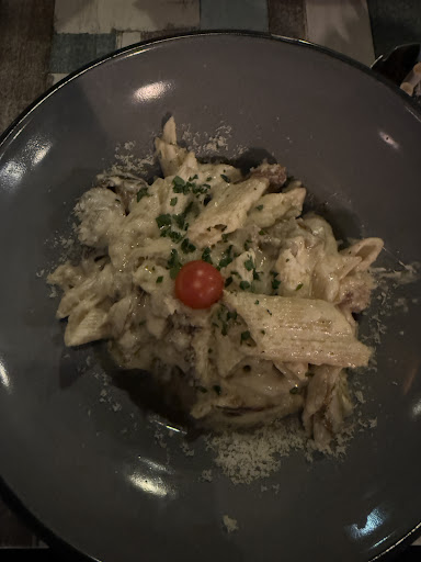 The food was delicious and well-prepared. We ordered three kinds of pasta, a Caesar salad, and fries with mushroom and cheddar dip—everything tasted great. The coffee and drinks were also very good.
