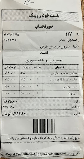 Read moreThe food is OK. The location is rather funny in front of the largest mosque of Iran, which is also the largest religious site in the country. But you can sit outside and enjoy the weather on a breezy summer night. Service is OK, just a...