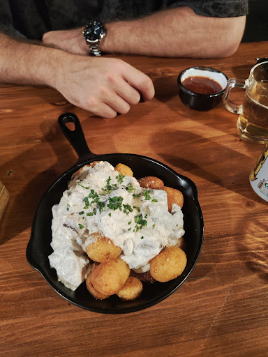 First of all, they didn’t provide us with individual plates, so sharing from one dish was inconvenient. The potato balls were good, but the pizza was overly greasy. The toppings didn’t stay in place, the base underneath felt soggy and oily, it had no garlic flavor at all, and the outer crust was undercooked on the inside while not being properly crisp on the outside. Overall, I found the pizza quite average.