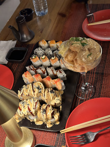 Read moreGreat sushi, great ambience, there was a bit of a wait but that's the price of fresh sushi! We tried the share plate of 32 pieces, the dynamite shrimp and the crab salad, every single thing tasted heavenly and we were amazed how supple and flavourful the sushi bites were. They have a wide selection of raw as well as cooked and fried sushi rolls made to order by none other than a Japanese chef! Ambience is relaxed and has a good amount of relaxing incandescent lighting and modern interior design. Prices are reasonable, not cheap, I wouldn't trust cheap sushi if I'm being honest. Will definitely come back...