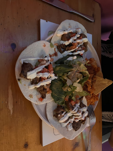 Steak tacos were ok but the vegan chimichanga was bitterly disappointing. Rice was microwaved (had shrivelled bits of corn in like the packets & giant clumps) No cheese & no refried beans in like suggested on the menu. Just frozen veg & tomato sauce. A pile of plain salad on the side (that I saw was just kept in an open tub not refrigerated)