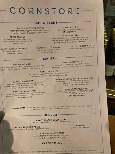 I had heard great things about the Cornstore, so when my family from Korea requested we go for a steak dinner to close out our wedding week, I happily chose the Cornstore. When I emailed for a reservation, I got a call back almost immediately from a lovely lady named Clodagh. She was so accomodating and friendly, ensuring that we would be on the ground floor since my mother in law is in a wheelchair, I was already impressed with the restaurant's service. She even let us know that they had a nice T-Bone special on, which would be great for our special occasion.