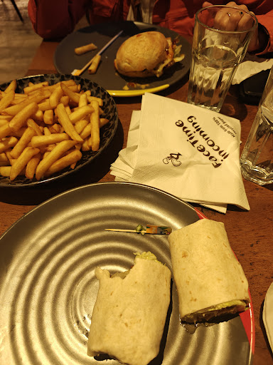 It was clean, pretty comfortable and pleasant inside, the table we sat at had some broken parts on the seating but there were enough places to sit at it that we could avoid the broken bits. The food was ok, no wow factor on any of it, nothing super impressive. We split the whole chicken, which came with either one large side or two regular sized sides, the regular sized sides are very small, so the meal was mostly chicken. For a whole chicken it was tiny, more like a small cornish hen. For €25+ it was quite expensive for what you got. We will probably never be back, the only good thing was the free refills on the soda but it was €3.70 or €3.90 for a drink so even that's...