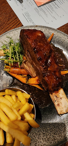 Read moreSeated on a low sofa near a fire exit. Never got my onion rings. Mains Ribs were tasty but not enough BBQ Sauce or meat . Tiny ramekin of coleslaw- literally one mouthful. Economic portion of chips. Big corn on the cob bulked up the plate. Dessert of Chocolate Brownie was Divine!!! Coffee for buddy took 15 mins as we had to leave for a concert across the road. SUN - THURS 2 COURSES for €26.95 did not apply apparently as steak & ribs were not included- personally I didn't spot the exclusion. Maybe we were just unlucky on the night but I'd try other places rather than return. Waitress was very pleasant but lacked training - my buddy ordered a Martini and the barman came down to enquire what a "Gin Martini" was? We didn't know as we hadn't ordered one... Lots of room for improvement - would have been 2 Star bar...