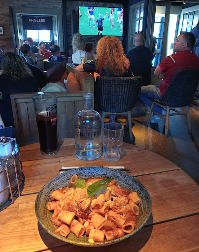 I booked a dinner for six to celebrate a family birthday for 7.00 p.m. I had asked for a quiet table, this had not been noted on our arrival but being a Monday, we had a choice. The cocktails at the start (alcoholic and non were fantastic), the chip selection were delicious. The wine was lovely. The vegetarian burger was uninspiring despite sounding lovely on the menu. The Peri Peri chicken which was disappointing. The chicken itself was lovely but the sauce was clunky and unbalanced in its flavour, the sweet potato and chorizo were noticeably absent. When we ordered another drink, we were told the bar was closed, no forewarning at 8.00 p.m. approx. We were also told that the staff party was on outside... hint, hint - hurry up and leave! We pointed out that we were not told the bar was closing and drinks were brought, we added on another non alcoholic cocktail immediately - thankfully we were not charged as this was undrinkable. Deserts were brought which included a lemon tart that had neon green lime sauce out of a bottle that is used on 99 ice creams. Disappointing. Furious cleaning was going on around us and by 8.30 we gave up and went home. We were uncomfortable as it was clear we were not welcome at this stage. The staff party looked like it was going to be a good evening, lovely that they were having it at the Anglers but management should have closed the restaurant for the evening out of respect for the staff and customers, especially the staff who had to work. Paying was another disaster, overall it was good value but the inability to work a voucher, take a tip and understand simple maths was...