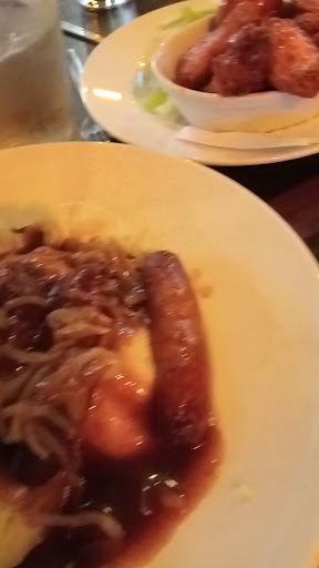 It would of being nice if the bangers and mash came with a side of gravy to pour over as an little extra as we Al like our mash and gravy different. Wings were cooked beautifully with Franks wild sauce a bit to spicy hot and vinegary for me next time must try the mild. The big jug of water was welcomed.