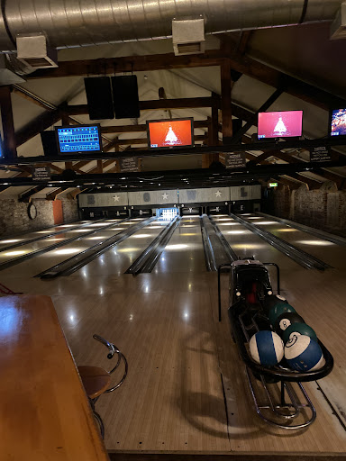 Seated area behind the bowling lanes where we had the party has a lovely view into the male toilets where while eating you can see other men pee..........